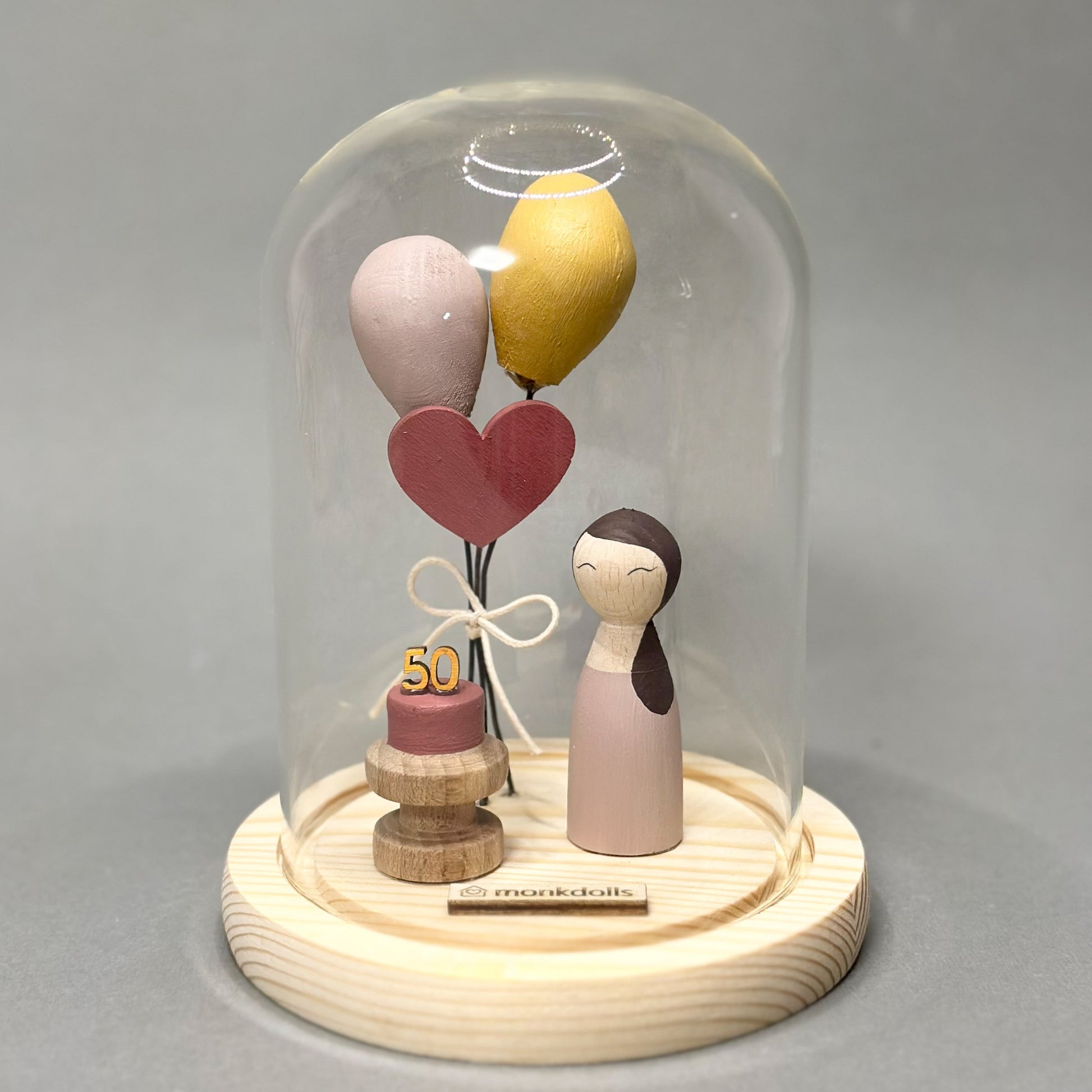Весел и уникатен подарок за роденден! Под стакленото ѕвоно се сместени три балони и торта со бројка која се персонализира според возраста.